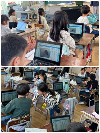 どんぐりの観察をメモにすることを目標にし、タブレットをフル活用することで、児童も楽しく学習できています。