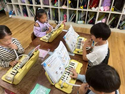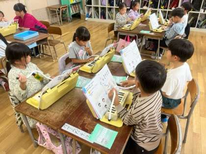 友だちの旋律を真似っこして歌ったり、ハーモニカを吹いたりしました。鍵盤ハーモニカも段々上達してきています。