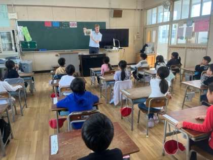 Hayman先生は香簑小校区にお住まいの方で、2012年から本校だけに英語指導ボランティアで携わっていただいています。