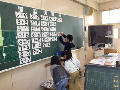数字がどんどん増えていること、式が反対になっていることなど、色々なことに気がつきました。