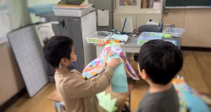 つなげる言葉をたくさん使って、友だちと長く話すことに挑戦しました。あいづちをうったり、笑顔で目を見て話を聞いたり、自分で今日の目標を1つ決めて取り組んでいます。