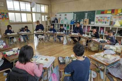 英語を教えてくださったHayman先生との給食なので、みんなで円になって食べました。
