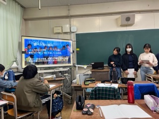 2つの教科で学んだ内容をまとめて発表しました。今回のテーマは万博のテーマでもある持続可能な社会、SDGsについてです。