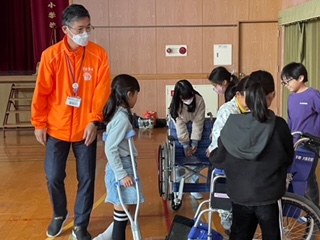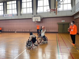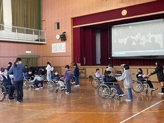 今日は社会福祉協議会、ニッセイクリエーションの方々をお招きして、『車椅子体験』『車椅子ダンス』『車椅子バスケットボール』を体験させていただきました。