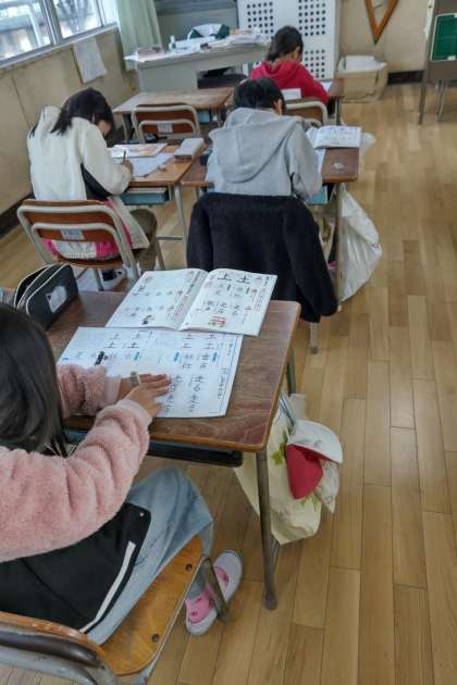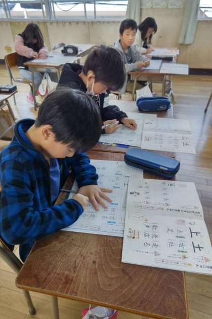 書写の学習では、姿勢を正して字の形を確認しながら、ゆっくり、じっくり書いていきます。
