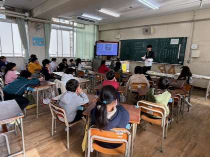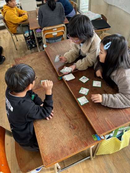 3年生は親子防災かるたについて、担任の先生から学んでいます。