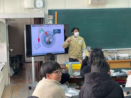 本日は三菱重工のエンジニアの皆さんが来てくださり、6年生に理科を教えてくださいました。
