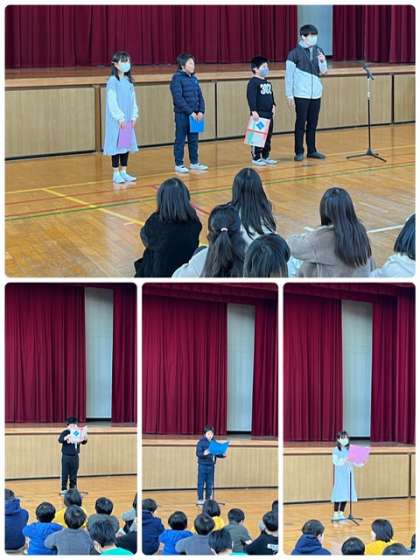 様々な行事を通して、多くのことを感じ取り、学習したことが伺える内容でした、また、作文を聞いての感想もしっかり発表でき、素晴らしい雰囲気の朝会となりました。