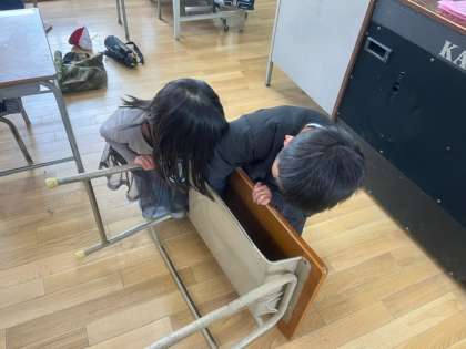 ロッカー、下駄箱、机や椅子の脚の掃除をしました。