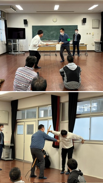 もし不審者が学校に入ってきた場合の対応や「さすまた」の使い方等も講習していただきました。
