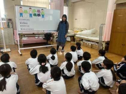 寒い冬の日にはどんな服装で過ごすと健康に過ごせるのかが分かりました。その後は身長と体重を測っています。身長も少しずつ伸び、大きくなっています。