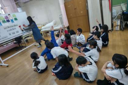 冬の服装の着こなし方を養護教諭に教えてもらい、子どもたちは来週から自分で服装を選んで学校に行く、と意気込んでいました。