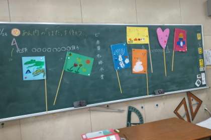 案内係に必要な道具をペアで協力して作りました。かわいい案内係さんの誕生です!