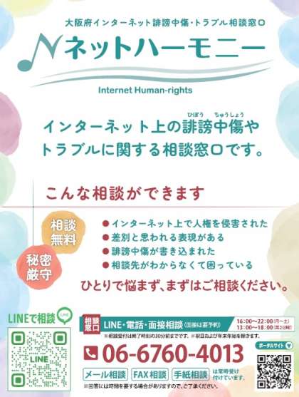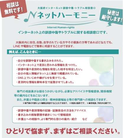 「大阪府インターネット誹謗中傷・トラブル相談窓口『ネットハーモニー』」について