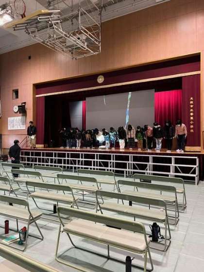 続いて第二部の式典について確認しています。ところどころ注意されても、すぐに修正ができ、本番では素晴らしい発表になりそうです。期待しています!