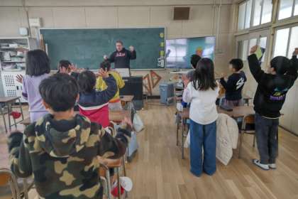 楽しみにしていたボブ先生との外国語活動が始まりました。