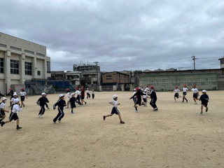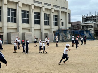 6年生は手を繋いで追いかけるので難しいですが頑張っています。