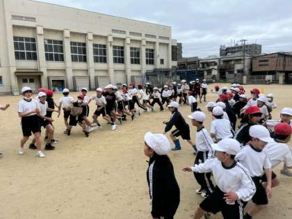 いろいろな鬼ごっこをしました。6年生のみんなは走るのが速くて追いつくのに必死な1、2年生。終わった後は、「6年生と一緒にできて楽しかったー!!」とニコニコ笑顔でした。