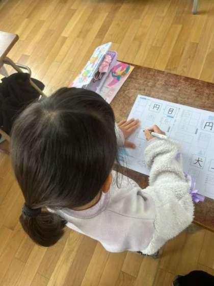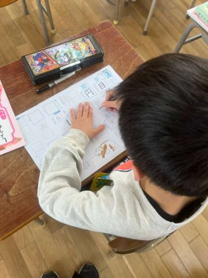 姿勢を正して、丁寧に文字を書いています。集中して、自分の字と向き合っています。