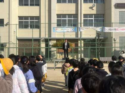 今年度ラストの全校朝会です。これまでで一番元気なあいさつが聞けました。
