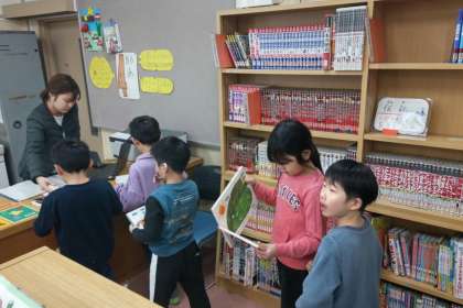 仲良く並んで本を借りたり、読んだ本を読書がんばりカードに書き進めてたりしています。