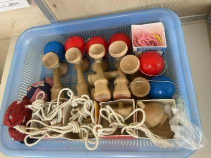 一年生も終盤となり、係の仕事や日直の仕事に責任を持って取り組んでいます。今日は皆んなが帰った教室に、黙々と作業している日直2人。そっと近寄ると、皆んなが遊んだけん玉やコマの整理整頓を行なってくれていました。