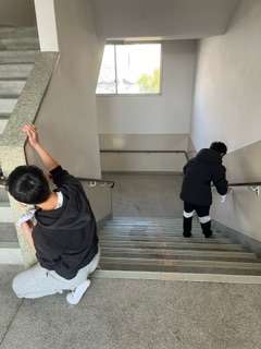 階段の手すりをモップやぞうきんで、隅々までキレイに!