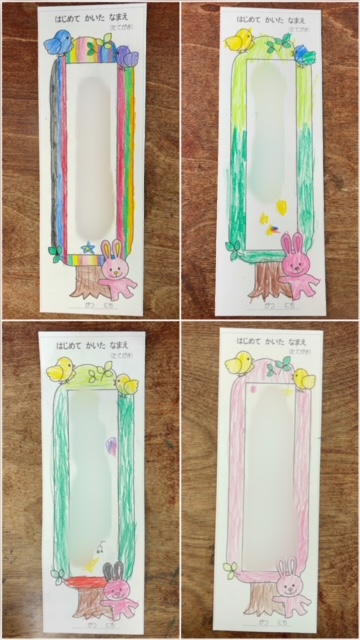 自分の机に貼っているシールを真似しながら上手に書くことができていました。