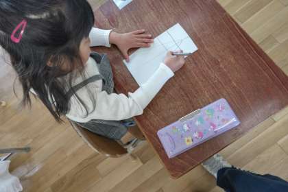 まずは、書く時の正しい姿勢や鉛筆の持ち方を確認しました。