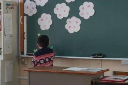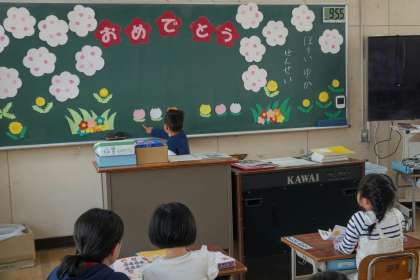 そろそろ、本格的な授業が始まるので入学式仕様の黒板を順に片付けていきました。
