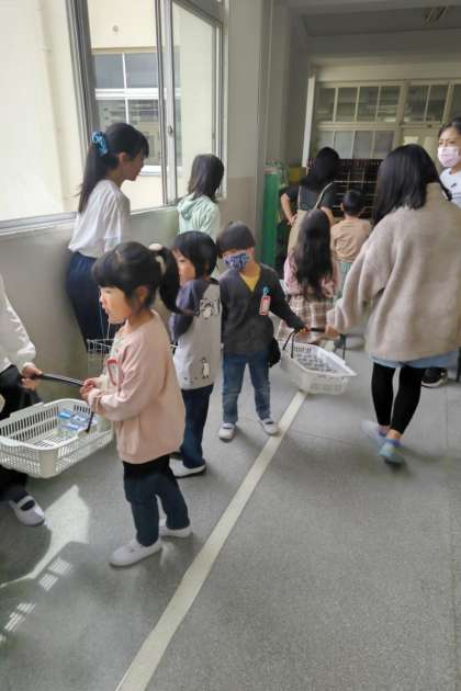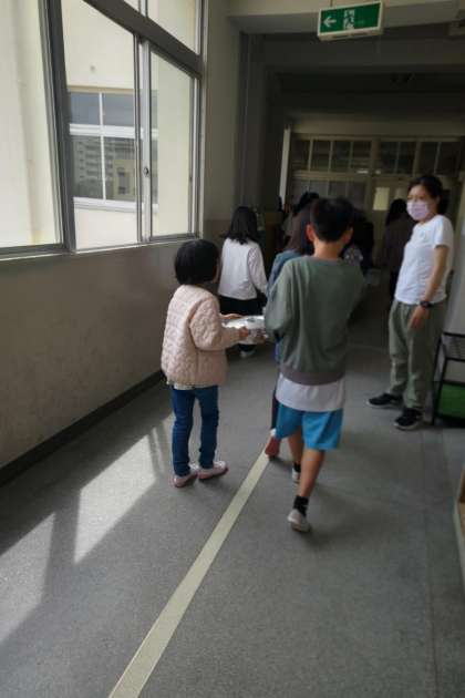 今日は2号車のお友だちが、6年生と給食室まで食缶を返しにいきました。