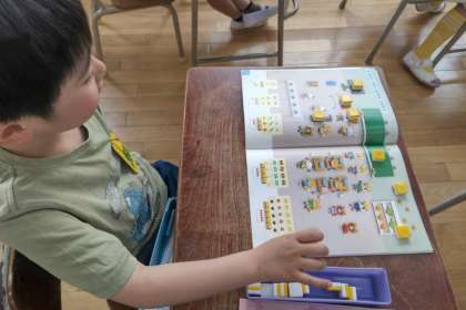 ブロックを使って数の学習を進めています。