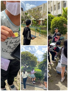 「春の生き物」の単元の学習をしています。一人一台端末を手に、校庭に出て春の生き物を探しました!