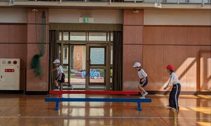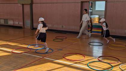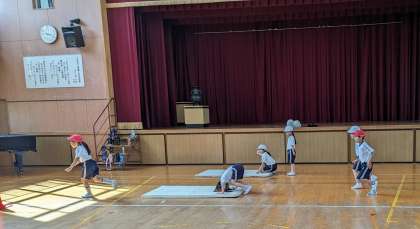 「跳ぶ」「バランスを取る」「転がる」「回る」など、いろいろな体の動きに取り組みました。