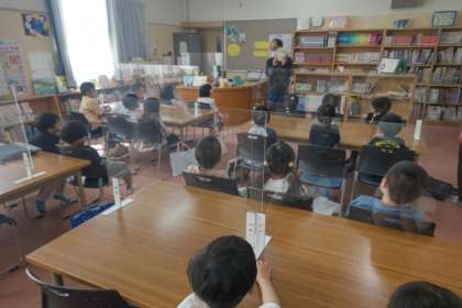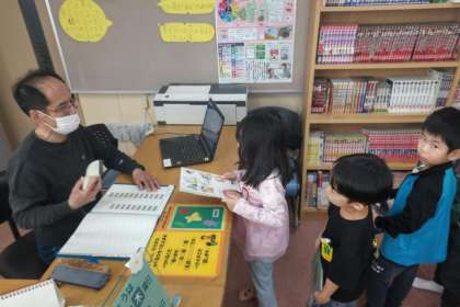 まずは、図書室でのお約束を確認して読みたい本を自分で選んで、バーコードを読み込んでもらいました。