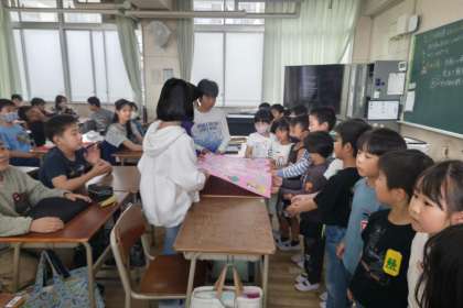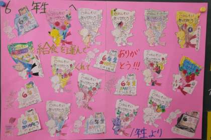 身の回りでたくさんのありがとうがあることに気がついた1年生、6年生にもお礼を伝えよう〜と気持ちを込めて色を塗りました。