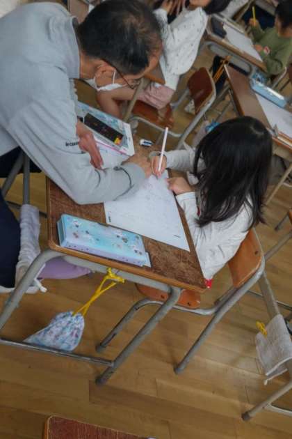 正しい姿勢や鉛筆の持ち方など、一人ひとり丁寧に確認していただきました。