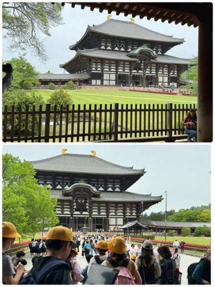現在の大仏は再建され、鎌倉時代のものより小さくなってることに驚きです。それでも世界最大級の木造建築物とのことです。