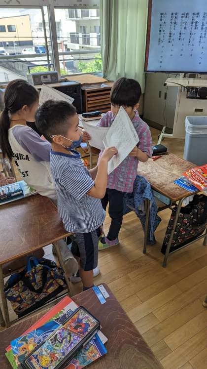 「あいうえお」の口の形を何度も何度も楽しく学習できる音読教材『五十音』に取り組みました。