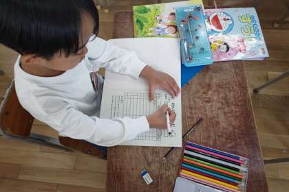 音読の姿勢はもちろん、あいうえおの口を意識して、大きな声ではっきりと読むことができています。