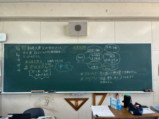 東日本大震災で、市や県や国がどのような取り組みをしているのかの学習をしています。