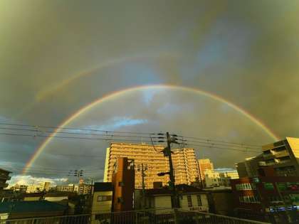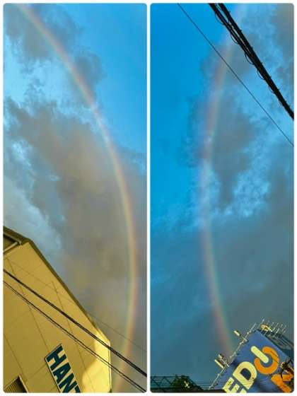 18時30分ごろ御幣島駅まで歩いていると、雨、強風に不運だなぁって思っていたら、クッキリな虹が出てました。