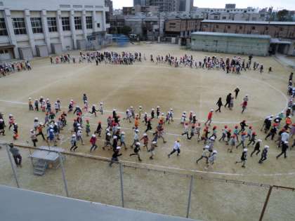 本日11月12日(木)から、かけ足集会がスタートしました。準備体操の後、各学年のレーンに分かれ、5分間自分のペースで走りました。風邪にかかりにくい元気なからだづくりをめざし、全6回実施します。