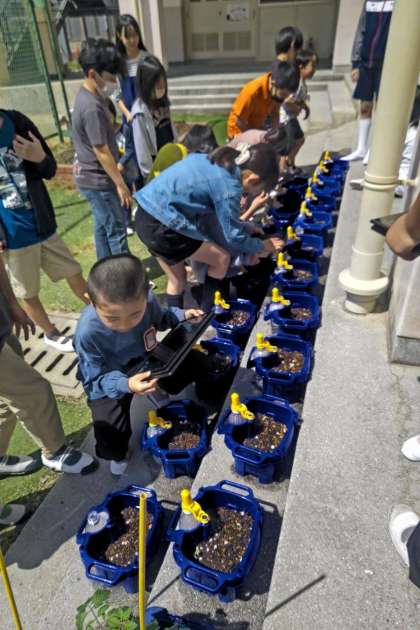 生活科で育てているあさがおの様子も早速、タブレットでパチリ。