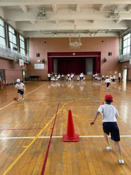 来週に予定している遠足に向けて、3・4年生の合同体育では、縦割り班でドリブルリレーをしたり、ポートボールの試合をして班活動を楽しんでいます!