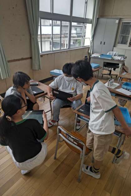 学年が異なるグループでも、意見を聞きあって、協力して話し合いを進めています。