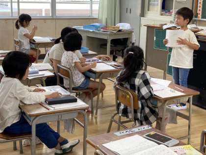 いい姿勢で、みんなに聞こえる声の3の声で話す、聞く人は0の声で等、発表の仕方や聞く態度もバッチリでした。