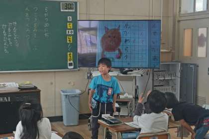 絵を見てや、動きを見ての文作りができるようになったので、自由に書いて発表もしました。