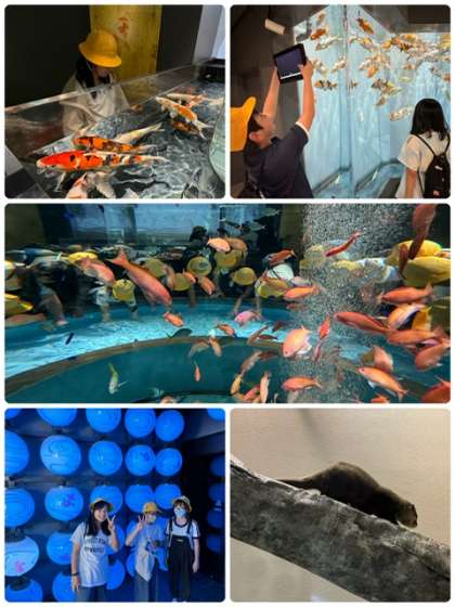 触れ合いコーナーやドクターフィッシュの水槽に手を入れて楽しんだり、金魚、コイなどの美しい魚の見学をしたり様々です。