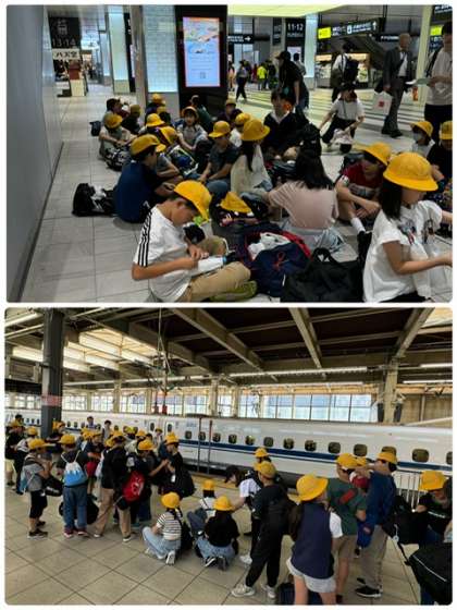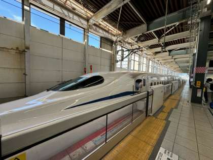 広島駅では、ホテルから大きな荷物を受け取り、新幹線ホームに到着です。